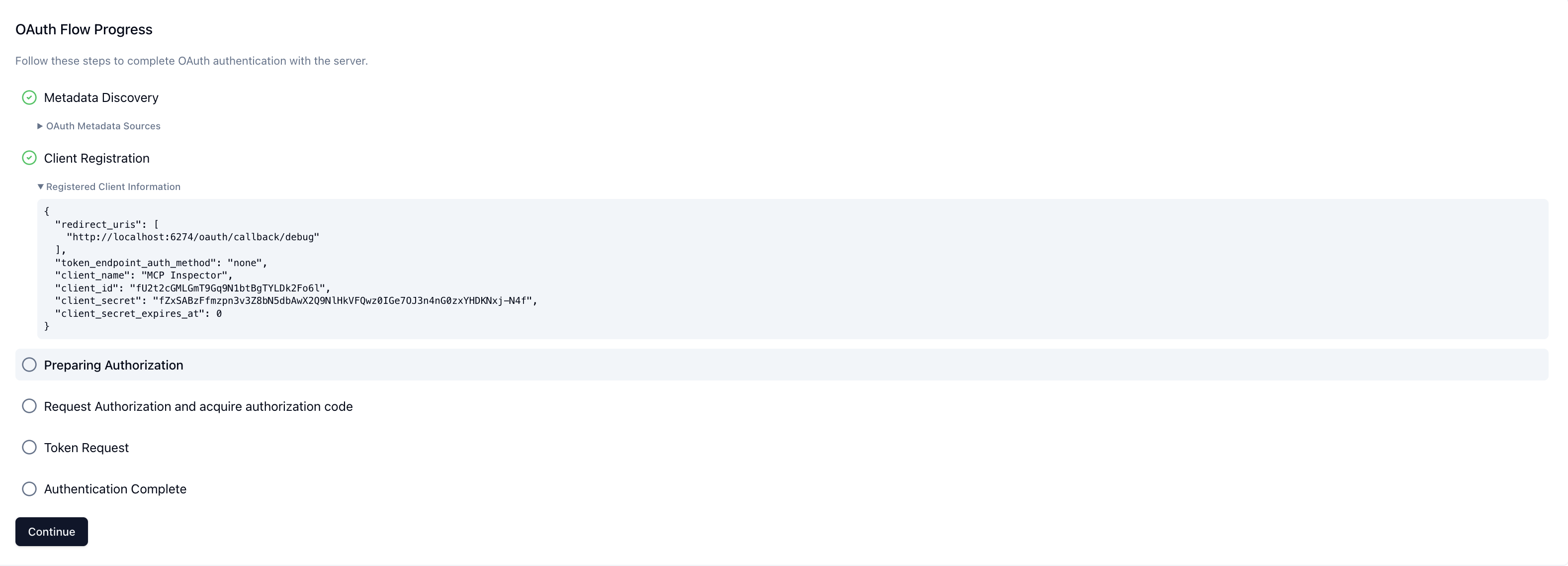 - OAuth debugging – use the MCP Inspector Auth settings to walk through each OAuth step and pinpoint where the flow breaks before you ship.