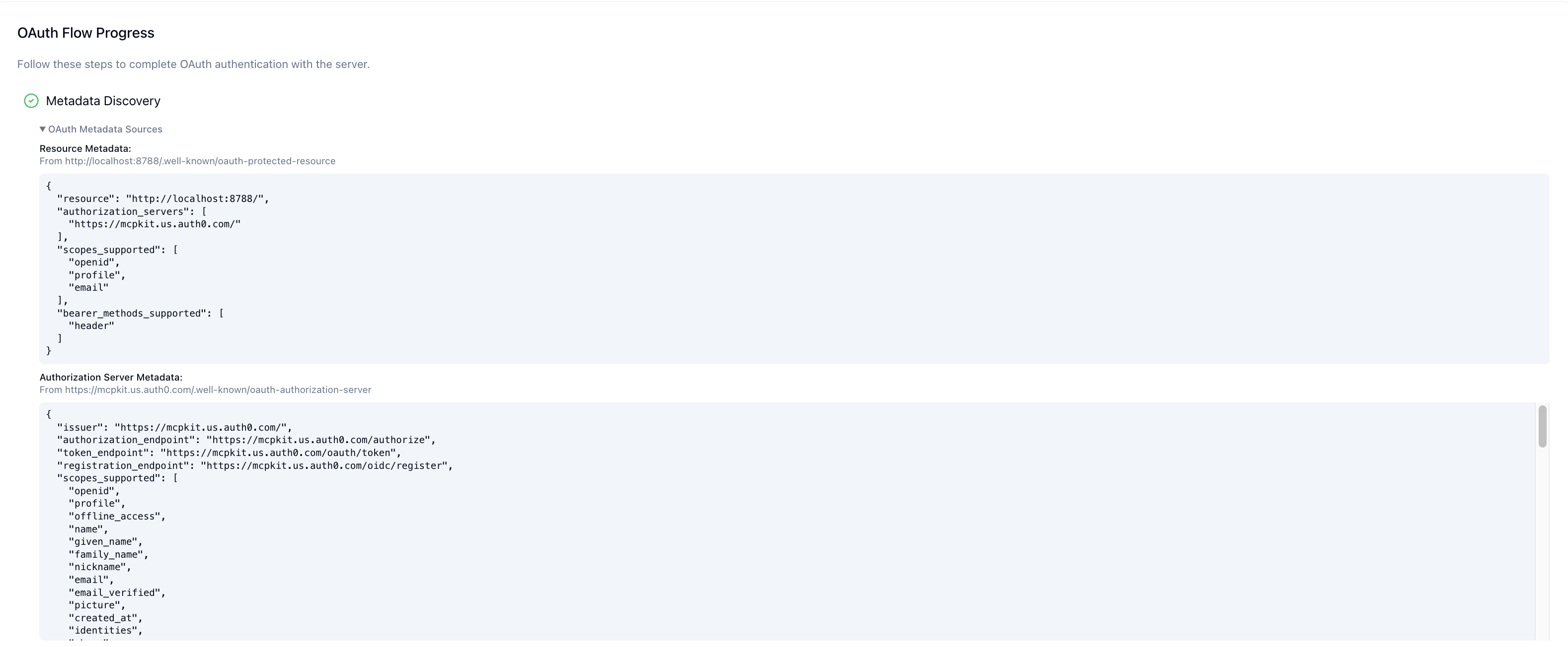 - Authorization server – your identity provider (Auth0, Okta, Cognito, or a custom implementation) that issues tokens and publishes discovery metadata.