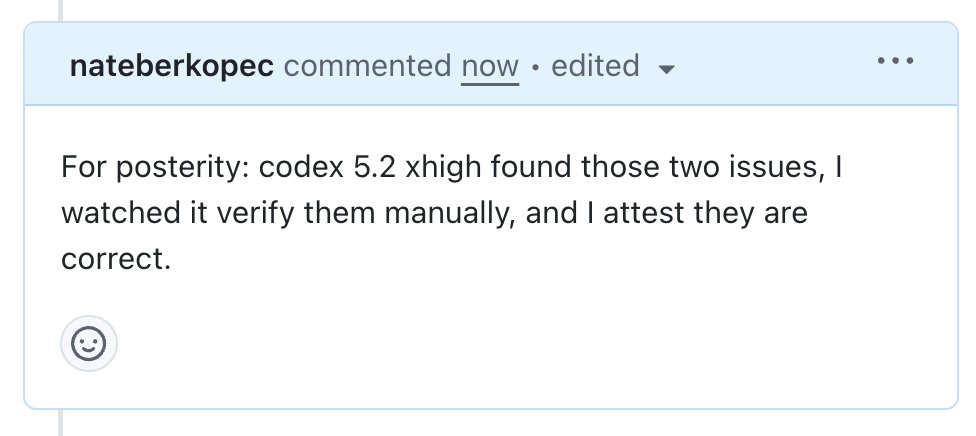 I spent 3 hours debugging and running all kinds of tests with Opus 4.5 for the discrepancy between CLI vs iOS app embeddings and the retrieval 5.2 Codex xHigh did "thinking" for like 20 minutes and casually one-shot it