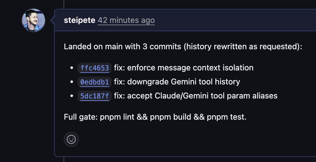 codex is so good. point at messy PR, sizzles out the 3 fixes out of a big commit, cleanly separates it. done. also idk why it always says full gate but i fully adopted this.