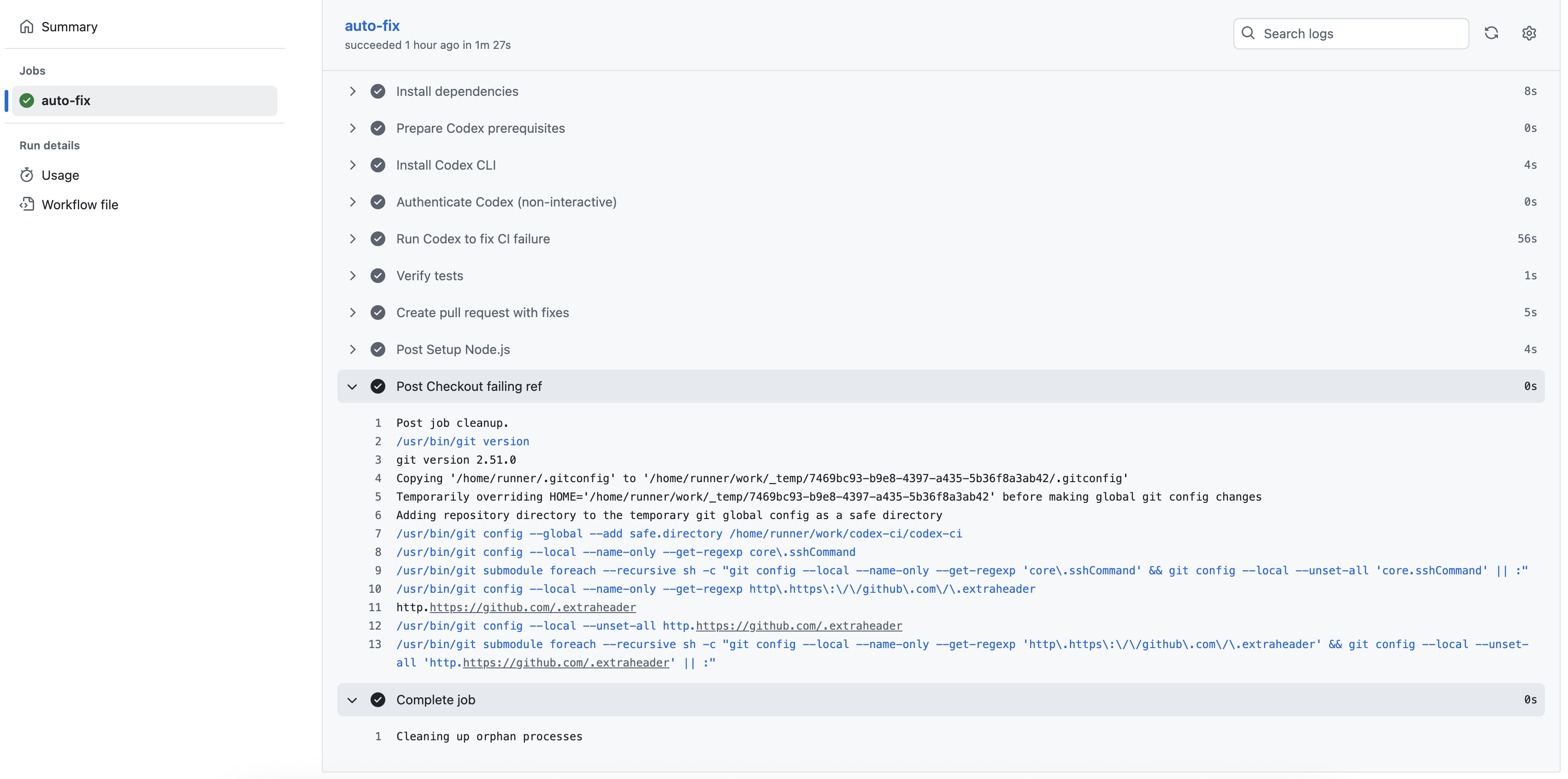 And after the Codex workflow completes execution, it should open a pull request from the feature branch codex/auto-fix. Check to see if everything looks good and then merge it.