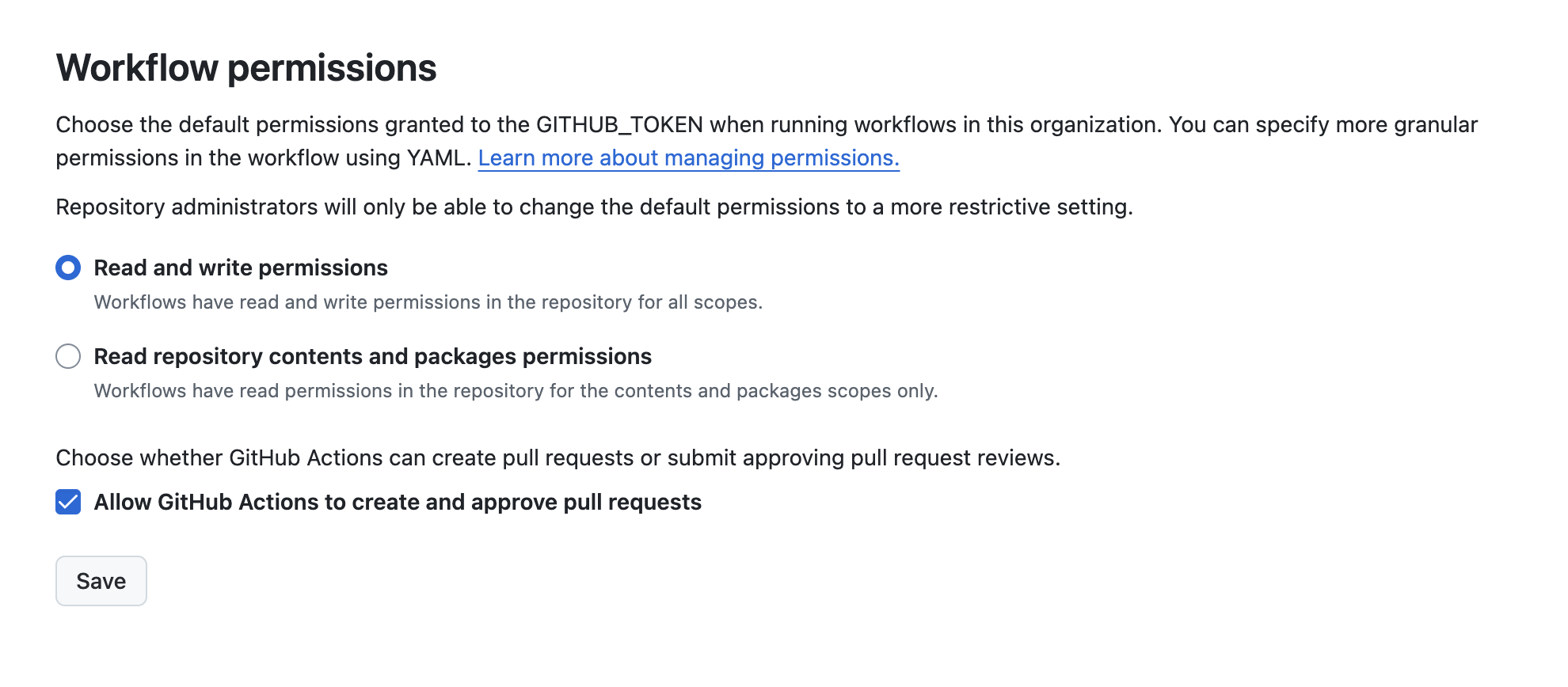 You’ll need to check the setting to enable actions to create PRs on your repo, and also in your organization: