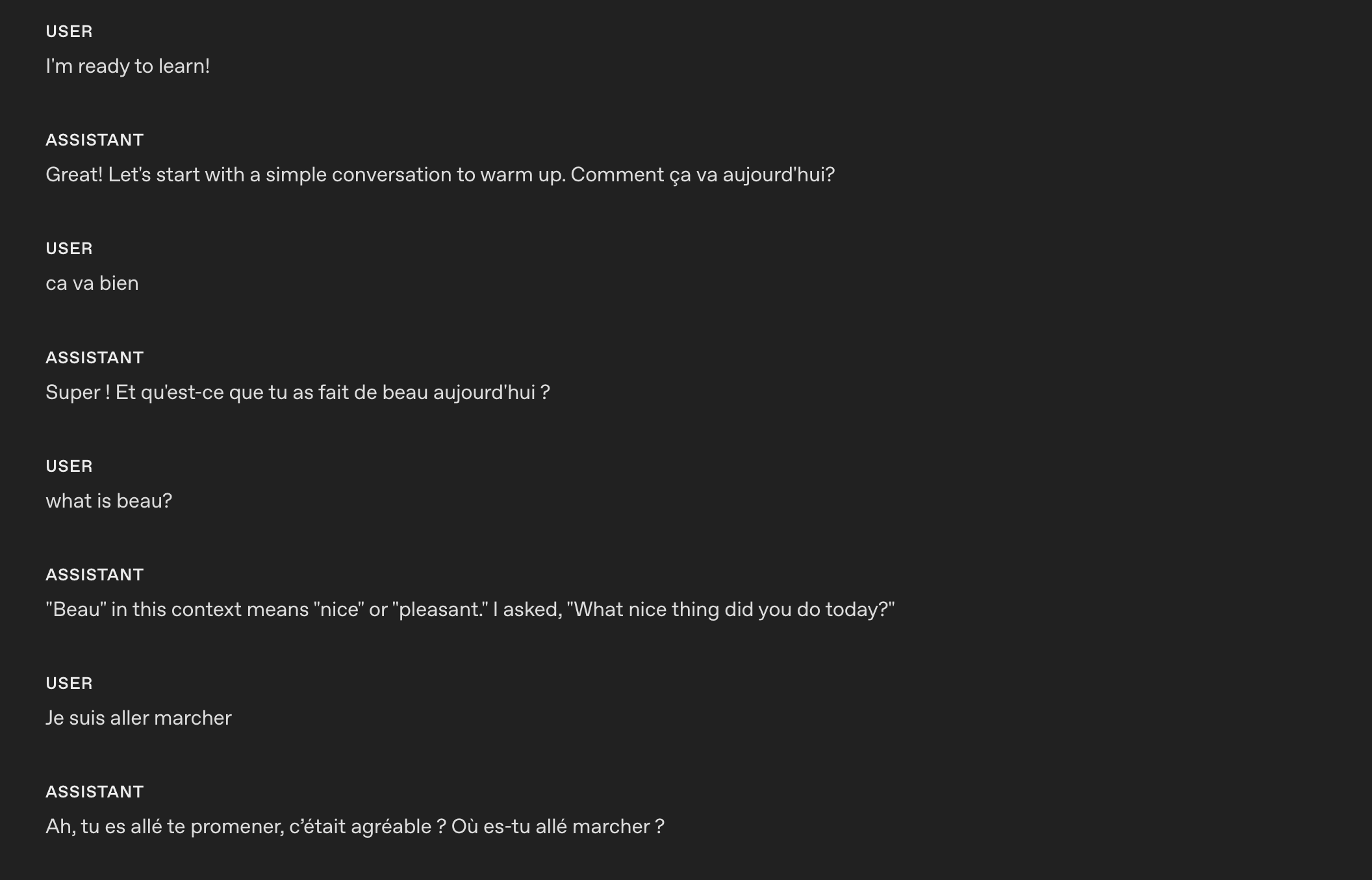 - Balance immersive French practice with supportive English guidance to ensure understanding and progress.